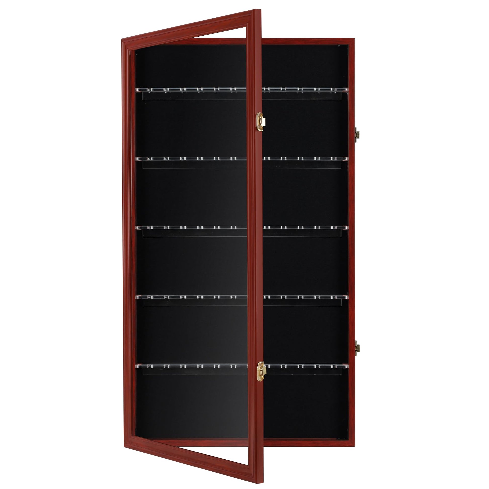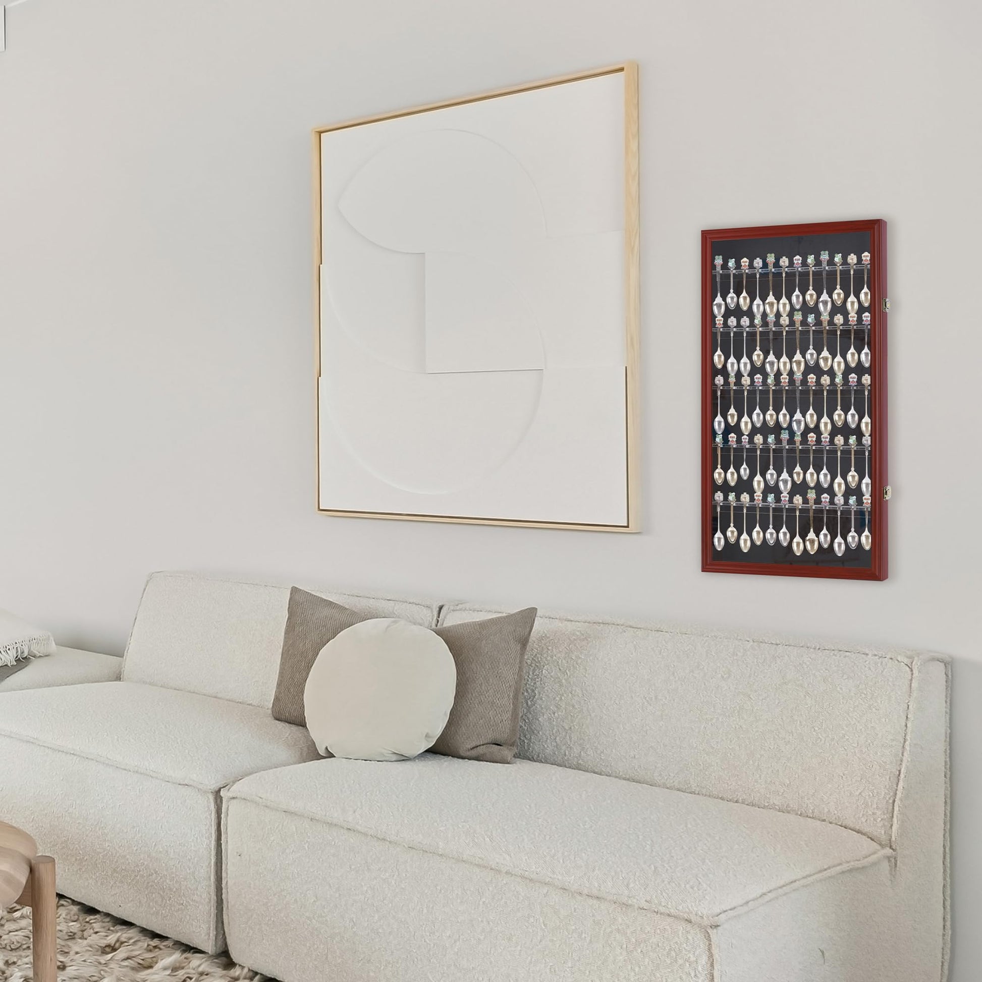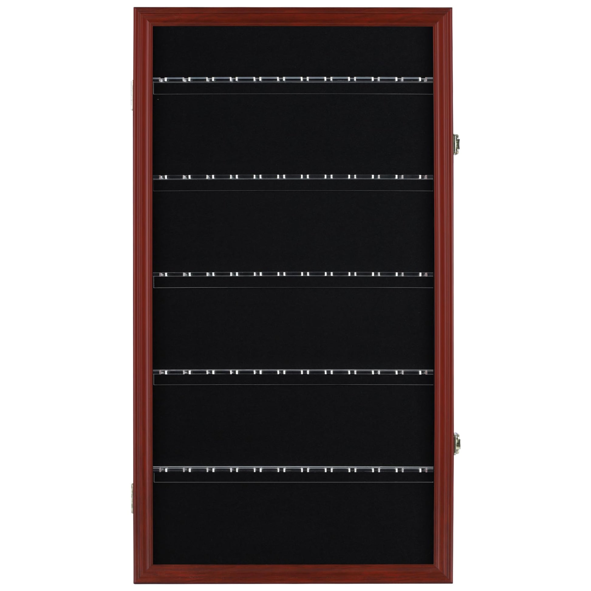 DisplayGifts 60 Souvenir Spoon Tea Spoon Display Case Rack Holder Wall Cabinet Collection Frame with UV Protection, Lockable Door (Cherry Finish)